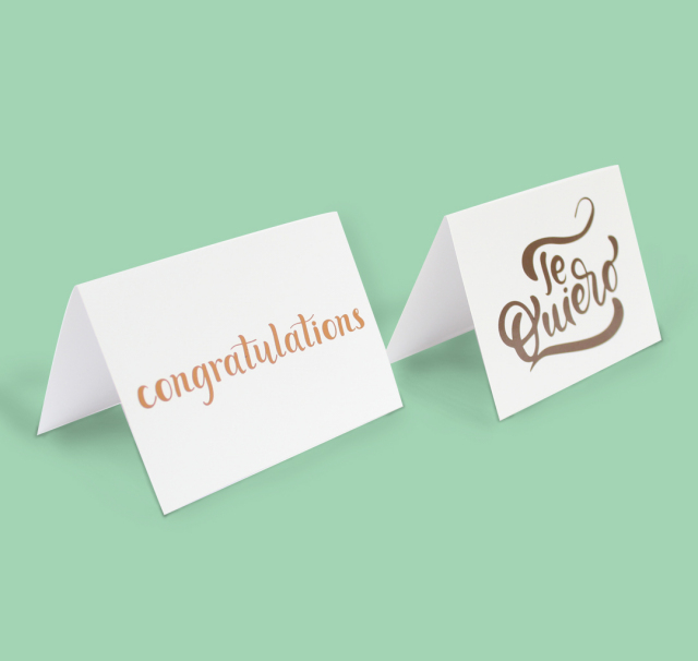Somos de los pocos talleres en ofrecer un terminado único para tus impresos, el foil, un efecto metalizado en tu diseño,con colores como plata, dorado, cobre, rose gold entre muchos otros que te harán destacar del resto y darle un toque diferente a tu marca.